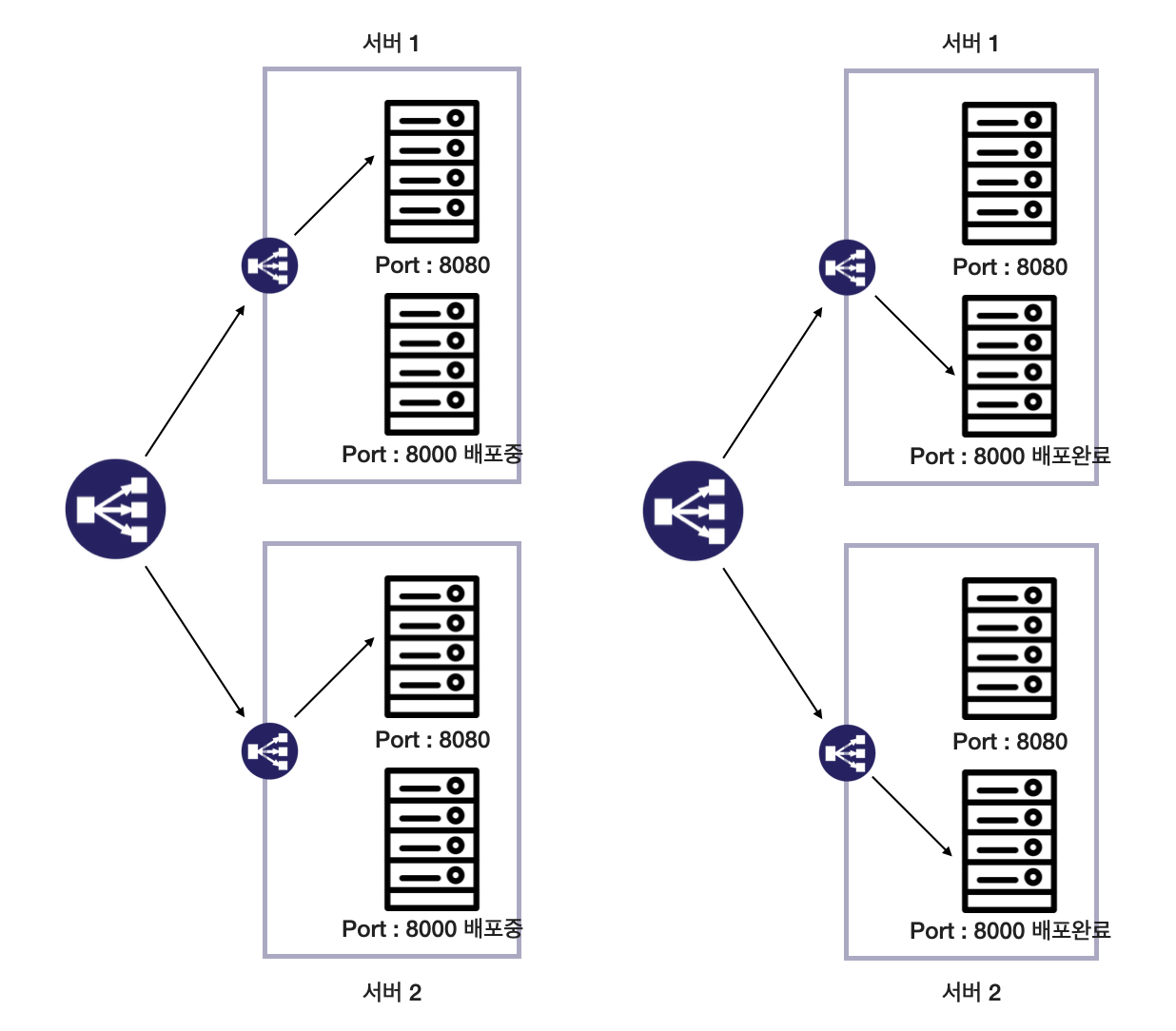 배포가 진행되면서도 2개의 서버가 서비스를 유지해야한다.