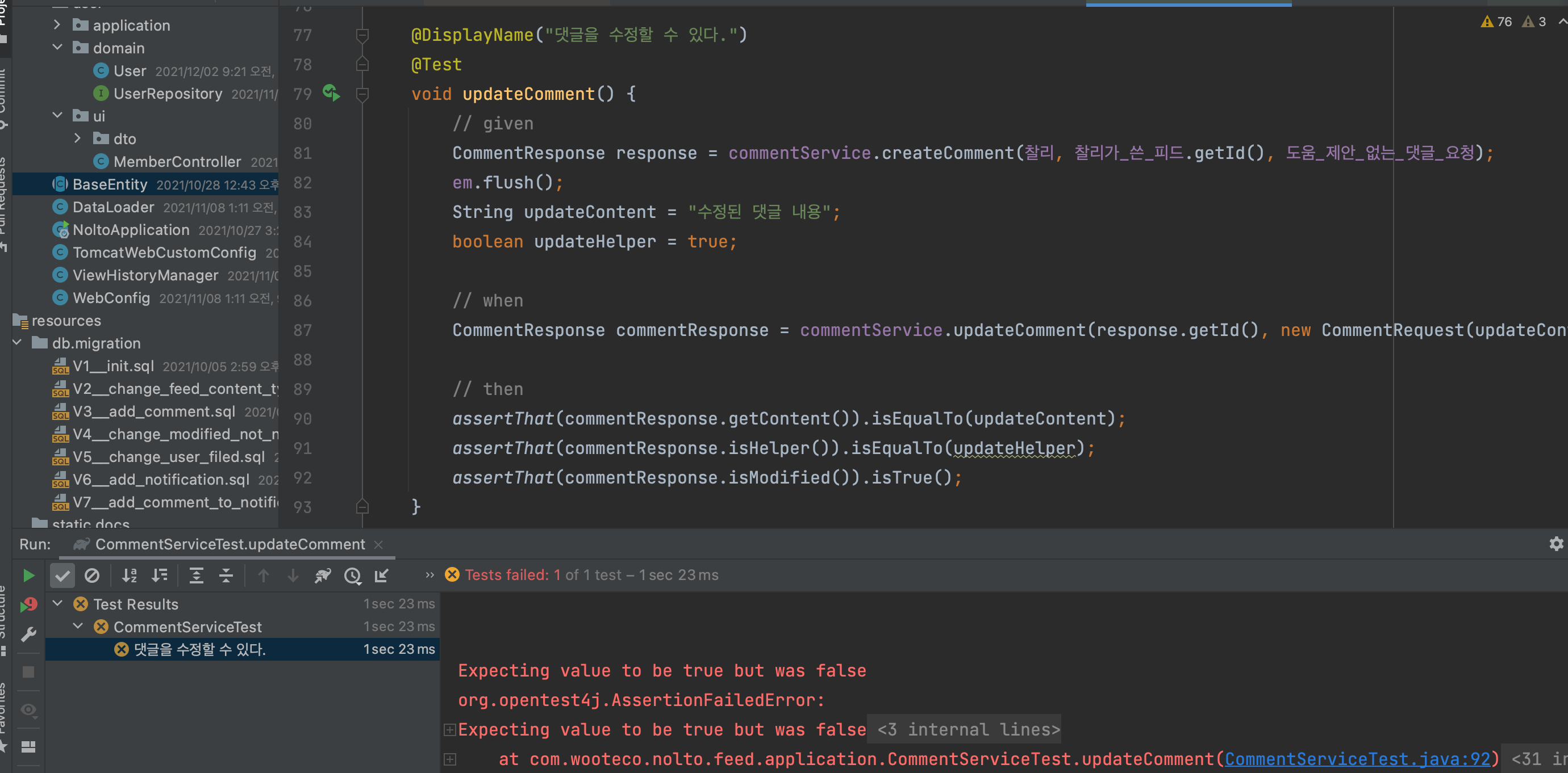 문제의 CommentService 일부