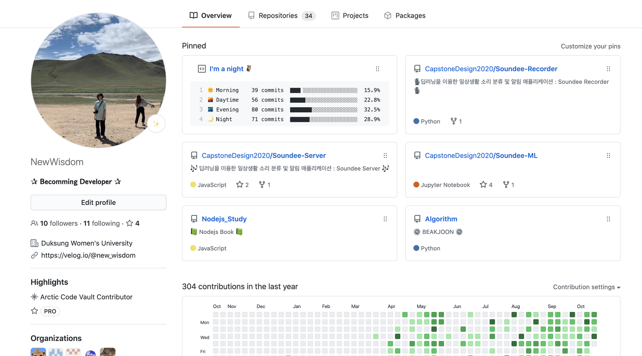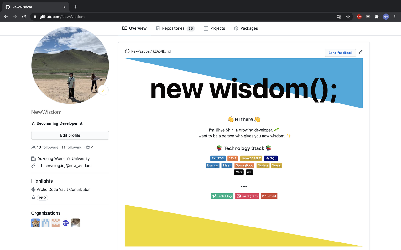 자 이제 내 깃헙으로 들어오자마자 보이는 프로필을 작성하고 꾸밀 것이다.