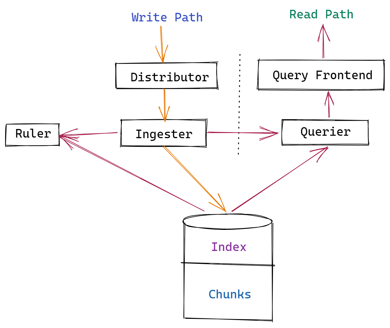 또한, ingester에 의해 작성된 압축된 청크, 청크 데이터의 key-value 쌍을 저장하기 위한 object storage가 필요하다.