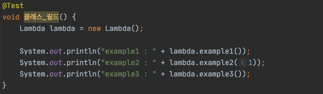 다음과 같은 Lambda 클래스가 있고, 각각의 메서드를 호출해 클래스 필드인 i가 어떻게 바뀌는지 살펴본다 🔎