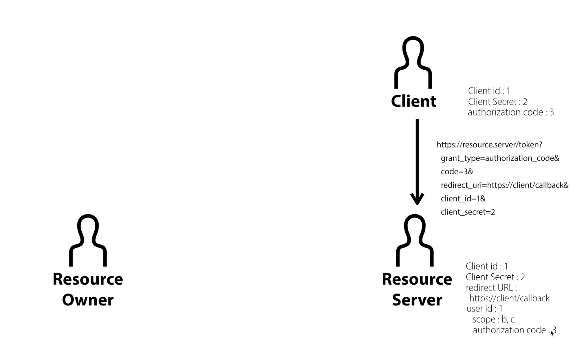 - 등록을 하게 되면 리소스 서버와 클라이언트는 Client ID, Client Secret는 동시에 알고 있는 상태가 됨